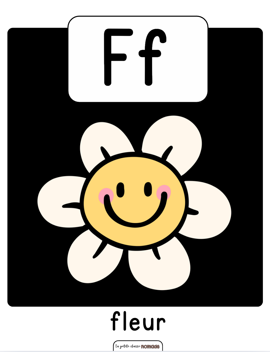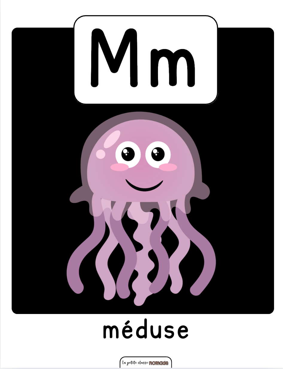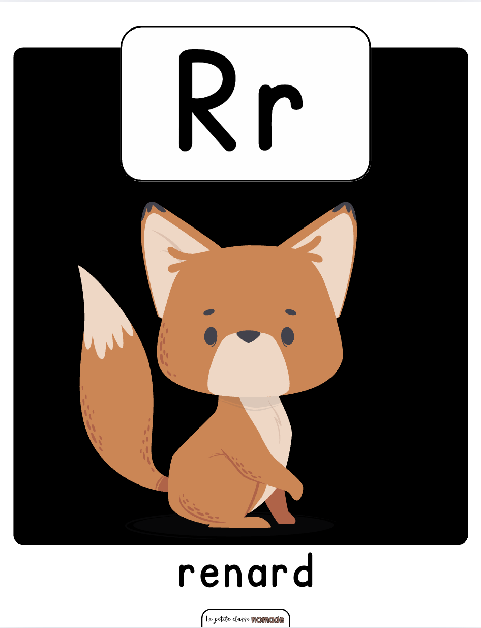 Ensemble de 26 affiches éducatives des lettres de l’alphabet.