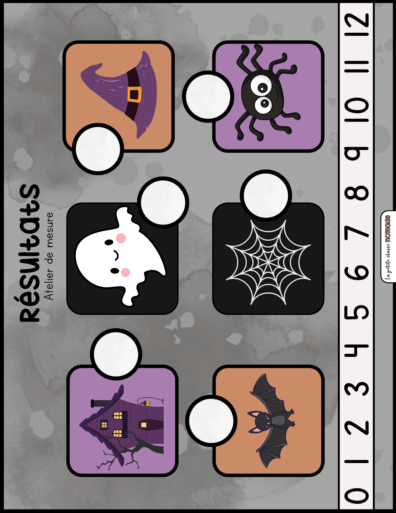 Les enfants doivent placer les objets choisis sur la ligne blanche pour mesurer l’image. Une fois la mesure complétée, ils inscrivent leur réponse dans le cercle blanc correspondant sur leur feuille de réponse.