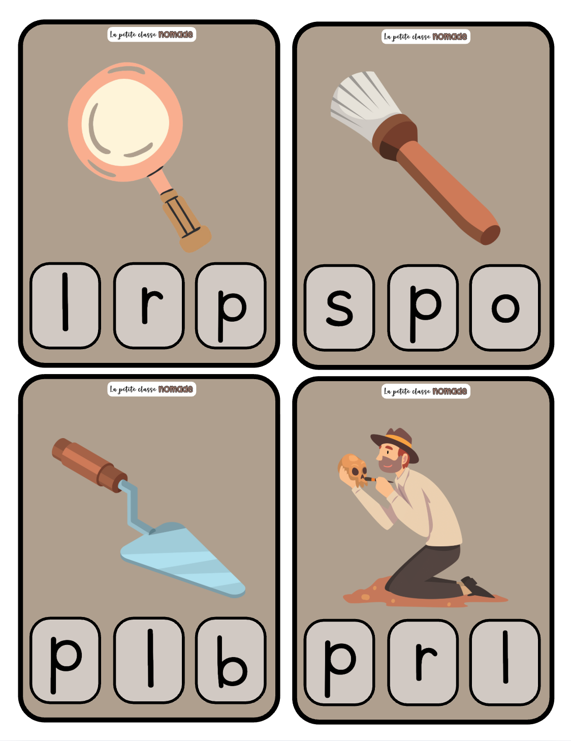 Ce document contient 20 cartes imagées. 4 cartes par page. Pour les mots plus difficiles, il y a l’inscription de celui-ci dans le haut de la carte.