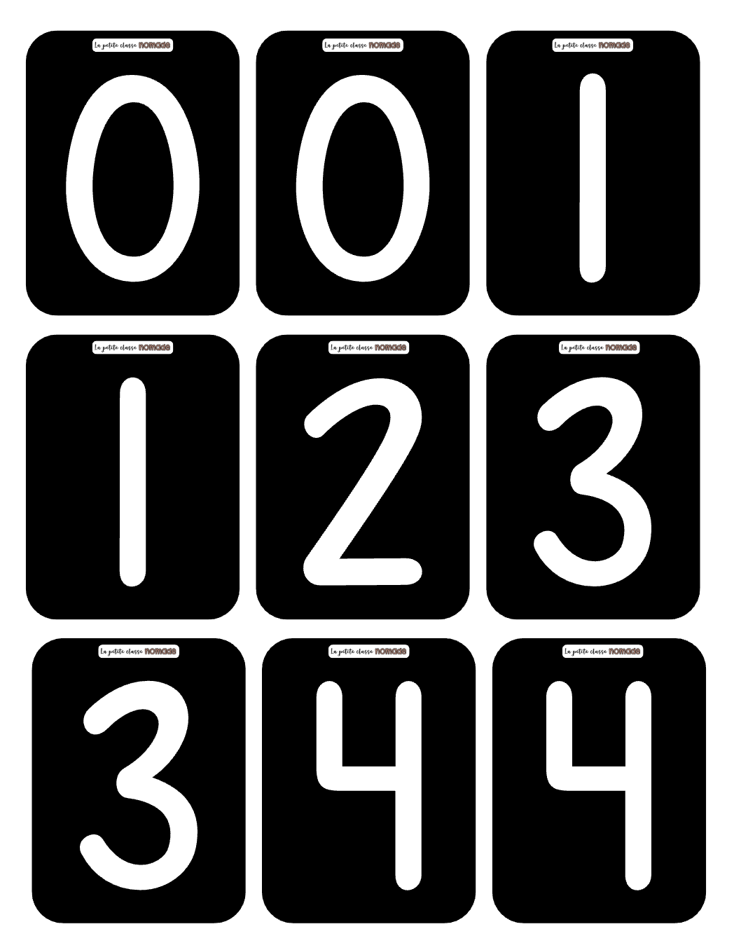 - Chiffres de 0 à 9 (en double)